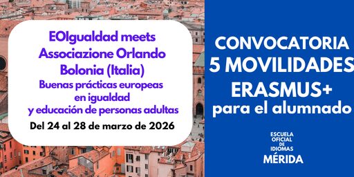La Escuela Oficial de Idiomas de Mérida convoca cinco movilidades Erasmus+ (una por idioma) que se celebrarán del 24 al 28 de marzo de 2026 en Bolonia (Italia), en colaboración…